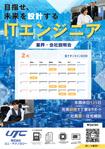 2027卒学生を対象とした「業界・会社説明会」2月の日程を公開しました!エントリーを受け付けいたします。 IT業界・ソフトウェア開発業界の仕組みから、仕事内容・当社の特徴などを分かりやすくご紹介します。質問の時間も多く設 […]